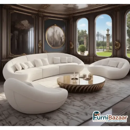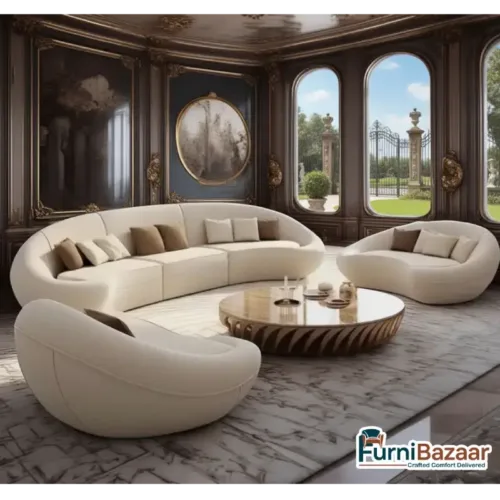 Premium Fabric 4+1+1 Sofa Set – Dual-Tone Designer Curved Sofa Set